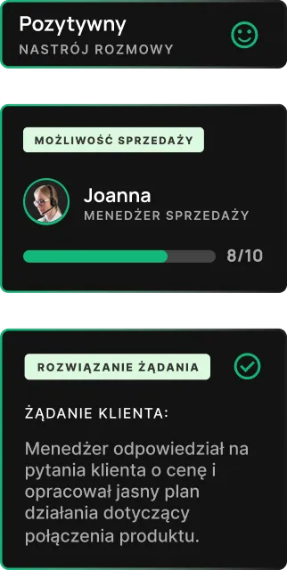 Dzięki dogłębnej analizie AI możesz łatwo uzyskać cenne dane o każdej rozmowie, co pomoże Ci lepiej zrozumieć potrzeby klientów i usprawnić pracę menedżerów.