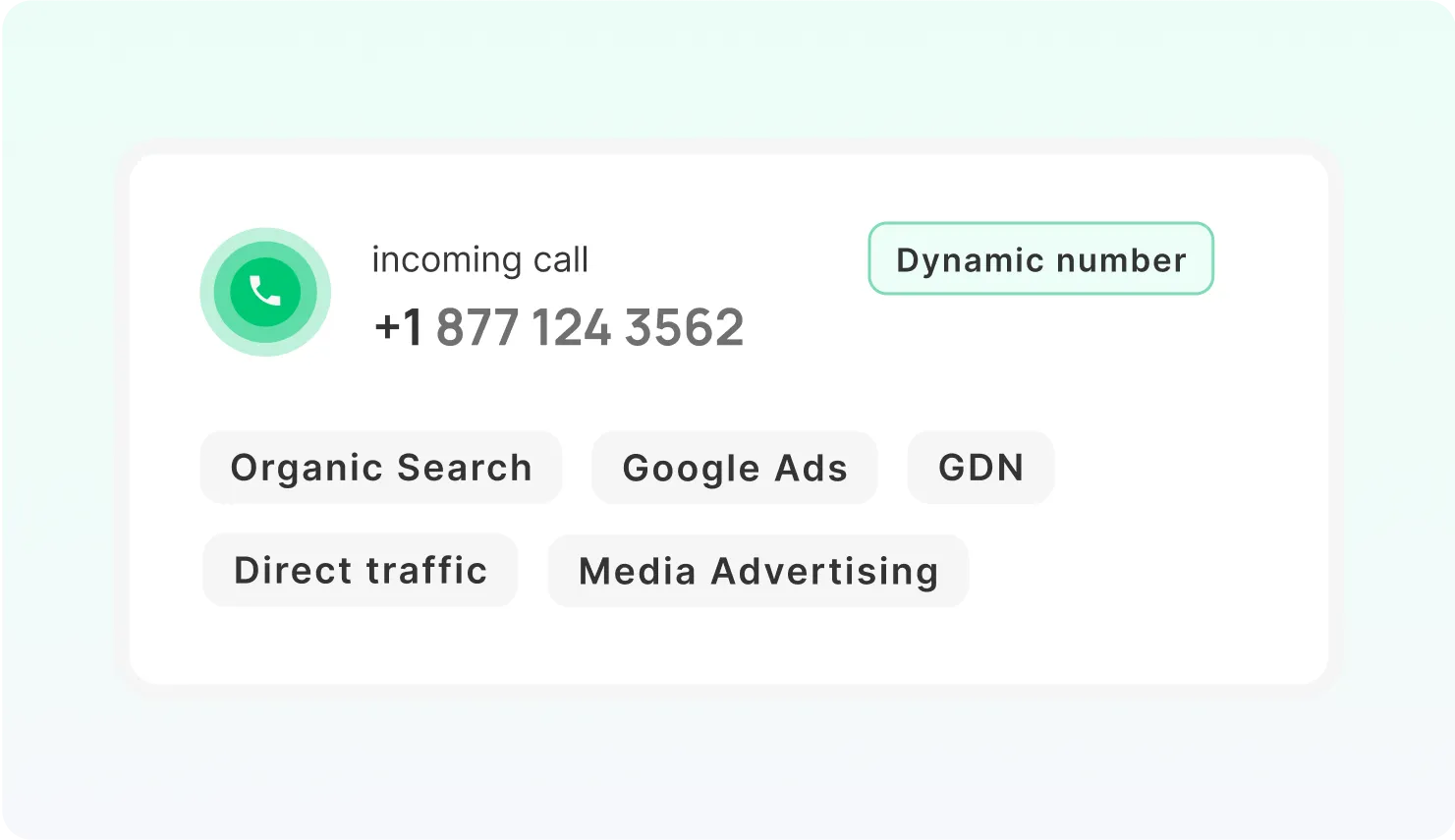 Allows you to hide the phone number and display it only to the most interested users. This way, even with sudden traffic spikes, you get accurate statistics and save on the number of tracking numbers needed. Conversion does not decrease — proven by case studies.