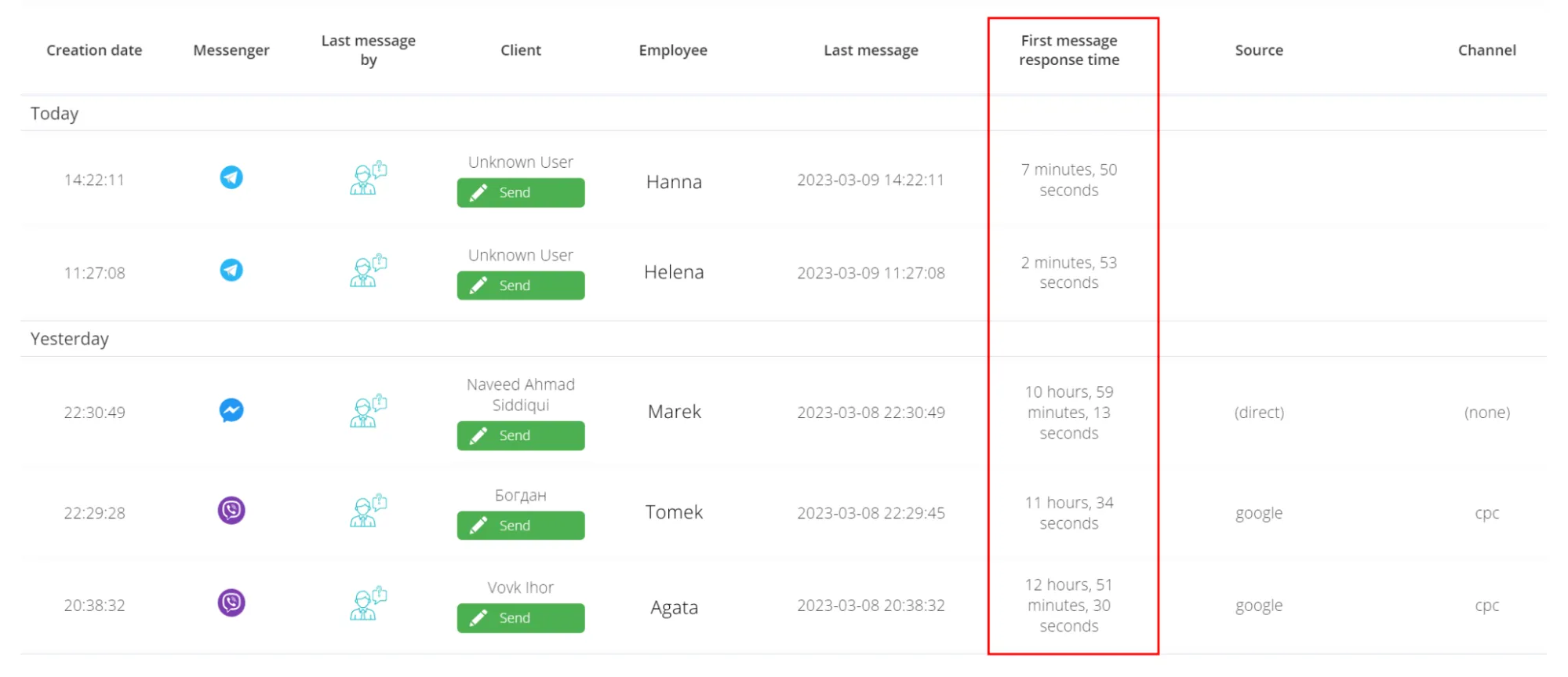 To wygodne nie tylko dla leadów, którzy kontaktują się tak, jak im pasuje, ale przede wszystkim dla zespołu. Menedżer nie musi przeskakiwać między dziesięcioma zakładkami, wszystkie wiadomości trafiają do jednego miejsca ― aplikacji Ringostat. Żaden lead nie zginie w którymś z messengerów, bo ktoś zapomniał sprawdzić kolejną aplikację.