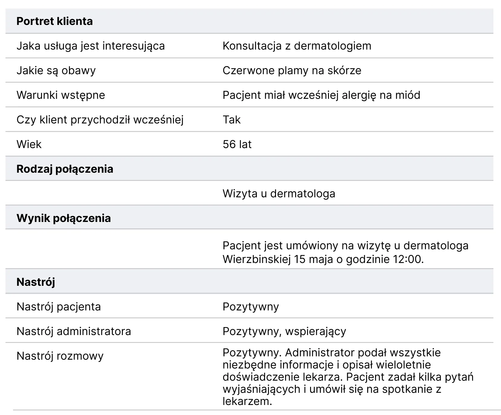 To eliminuje sytuacje, w których klient słyszy: „Musi Pan powtórzyć, co Pan mówił poprzedniemu konsultantowi". Każdy menedżer zawsze ma pełen kontekst i może kontynuować rozmowę od miejsca, w którym przerwał poprzednik.