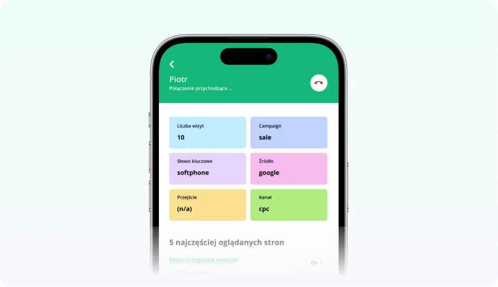 Ringostat Insights pomaga menedżerowi zrozumieć, kto i dlaczego dzwoni jeszcze przed odebraniem połączenia. Dzięki temu menedżer zobaczy, z jakiej reklamy klient przyszedł oraz na jakie słowo kluczowe zareagował, jak często odwiedza stronę internetową i które podstrony przeglądał. To pozwala lepiej zrozumieć potrzeby klienta, co umożliwia bardziej efektywną sprzedaż oraz precyzyjne dostosowanie oferty.