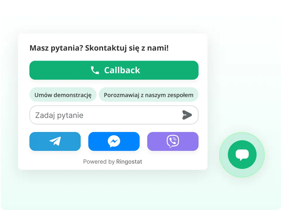 Jeden widżet na stronę, który łączy czat online, komunikatory (Messenger, Viber, Telegram) oraz callback. Klient sam wybiera wygodny sposób kontaktu, a Ty nie tracisz zapytań — nawet po godzinach pracy.