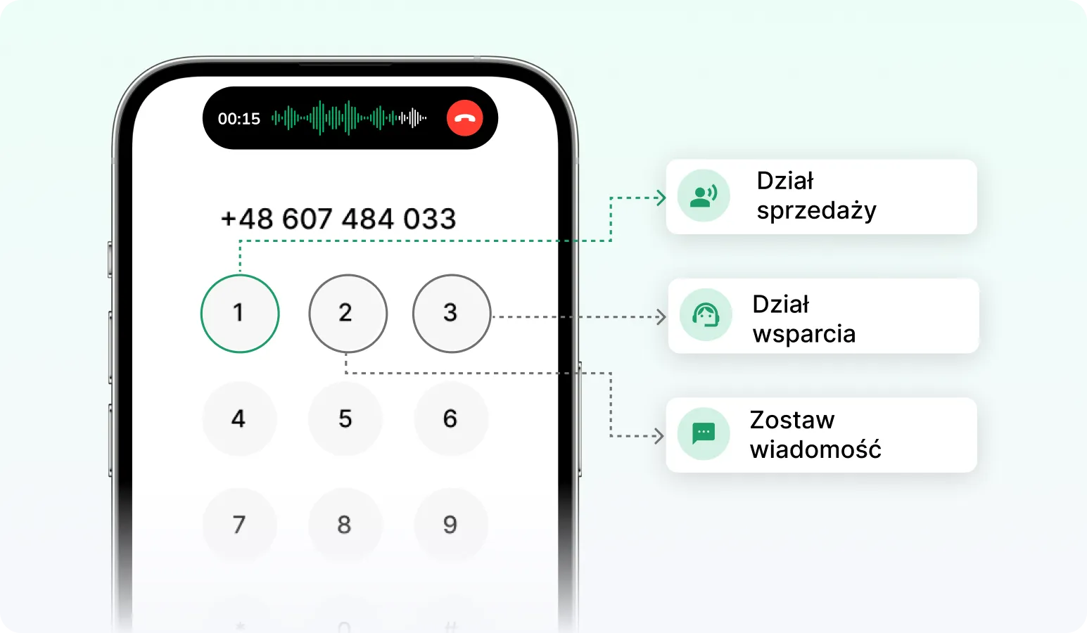 IVR i inteligentne kierowanie połączeń automatycznie łączą klienta z odpowiednim działem lub konsultantem. Zmniejsza to obciążenie zespołu, skraca czas oczekiwania i eliminuje ryzyko nieodebranych połączeń.