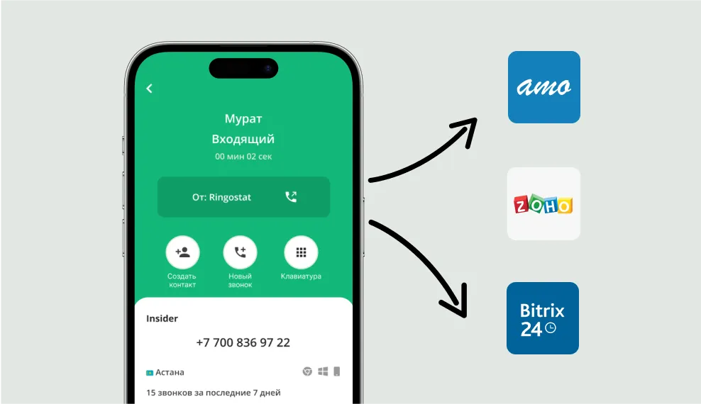 Интегрируйте телефонию Ringostat c вашей СRM-системой и другими бизнес-инструментами — всего в несколько кликов и без привлечения разработчиков. Автоматизируйте создание сделок, задач и контактов. Автоматически фиксируйте всю коммуникацию с клиентом в сделке или контакте.
