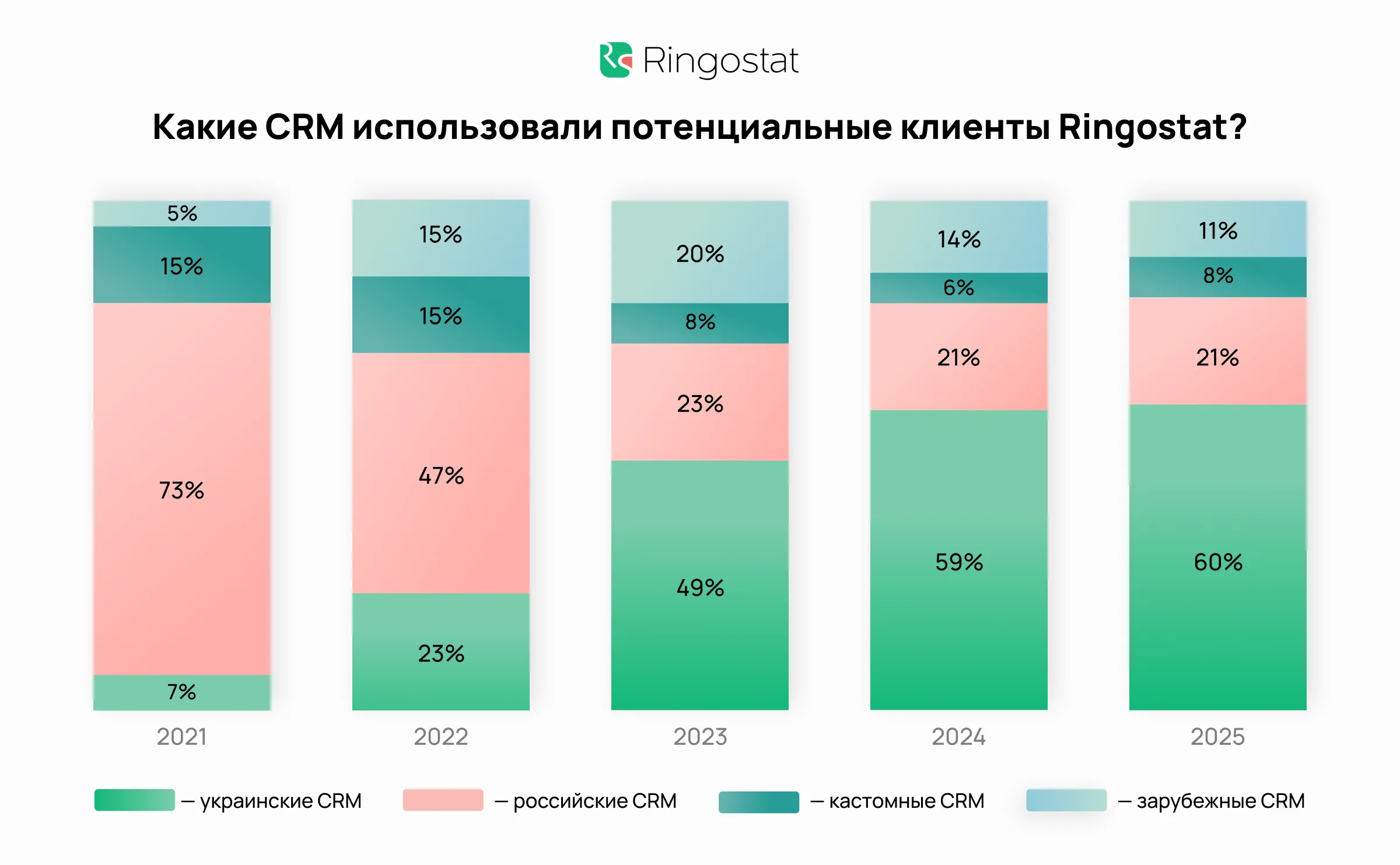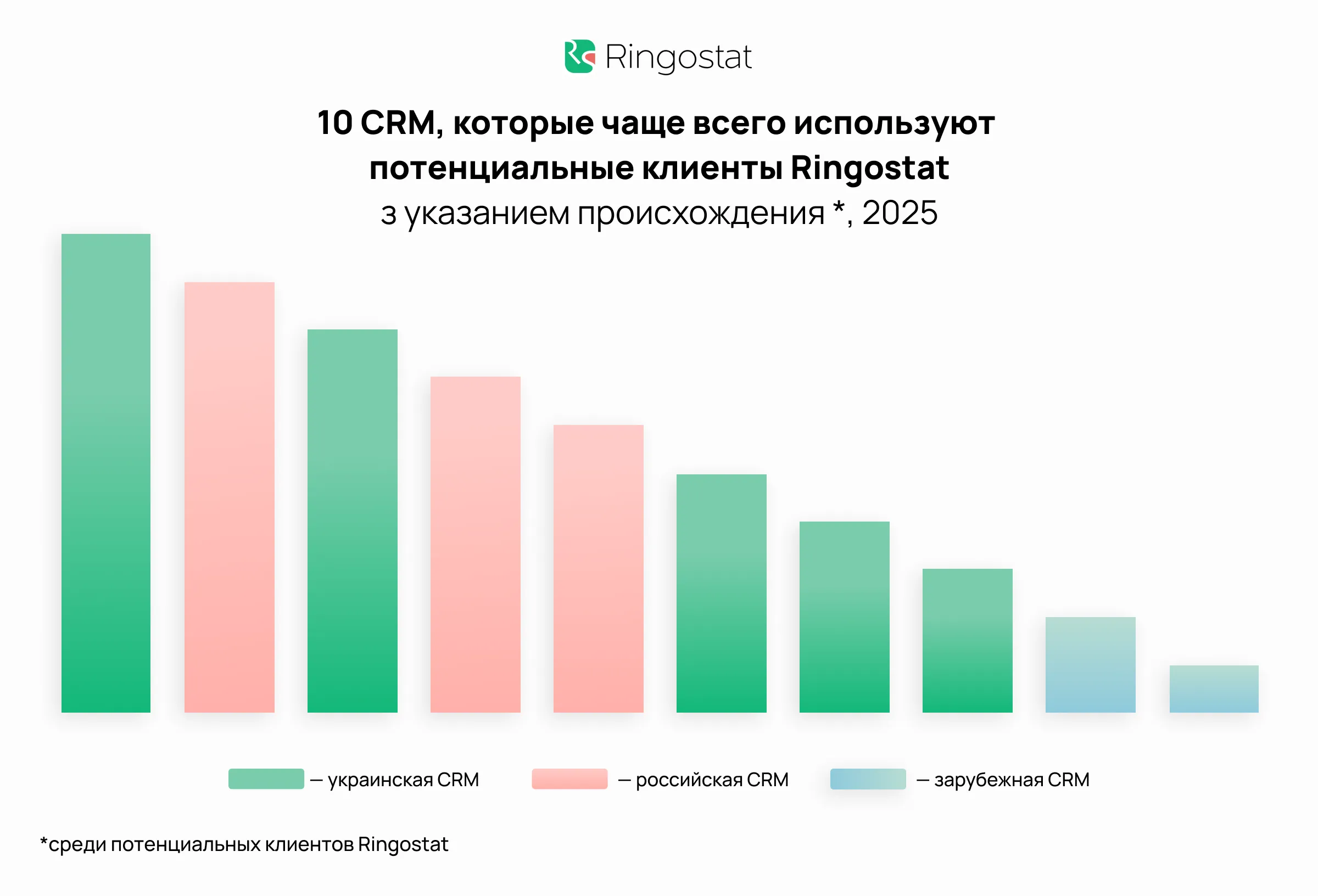 Важно. Ringostat не поддерживает сервисы страны-агрессора. Данные об использовании российских CRM — это исключительно информация, полученная от потенциальных клиентов.