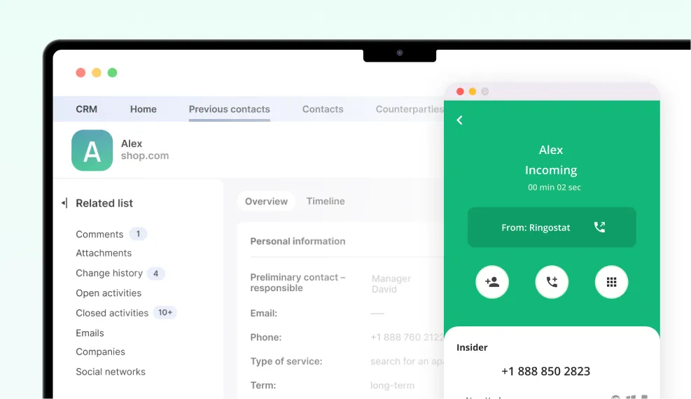 Expand your VoIP system’s capabilities with other Ringostat tools.All products are fully integrated and operate within one ecosystem — for maximum convenience and productivity of your team.