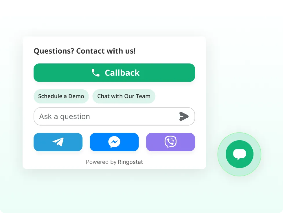 All-in-one widget that combines website chat, messengers, and callback in one tool.Customers choose how they prefer to contact your company, while managers receive all messages in a single window with full conversation history.