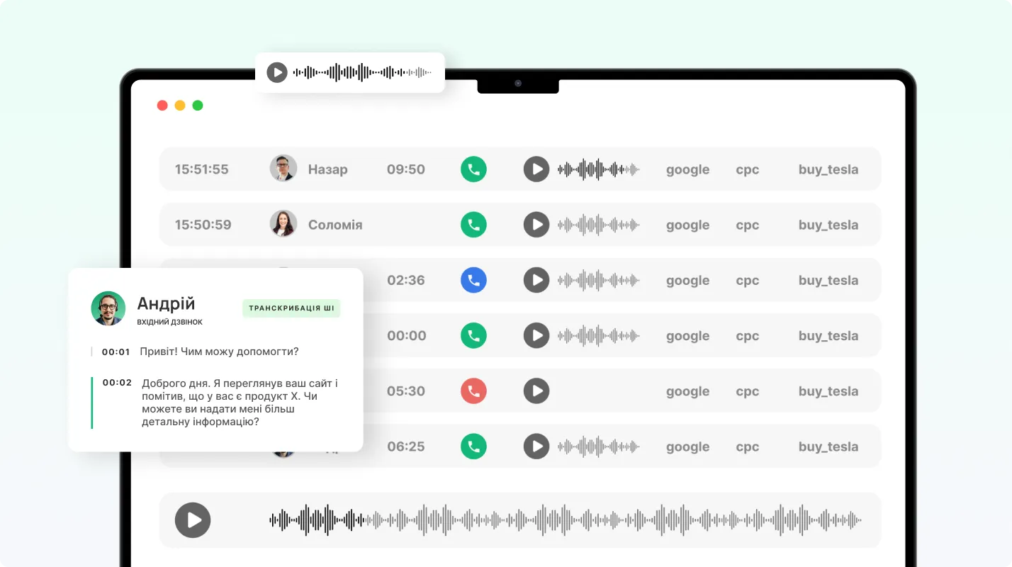 Використовуйте можливості колтрекінгу, щоб покращити конверсію телефонних звернень і отримати більше угод при тому ж рекламному бюджеті.