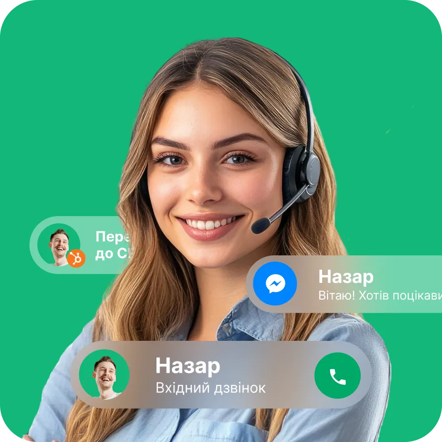 ІР-телефонія, онлайн-чат, месенджери, АІ-аналітика та інтеграція з вашою CRM без складних налаштувань. Керуйте усією бізнес-комунікацією за допомогою єдиного рішення.