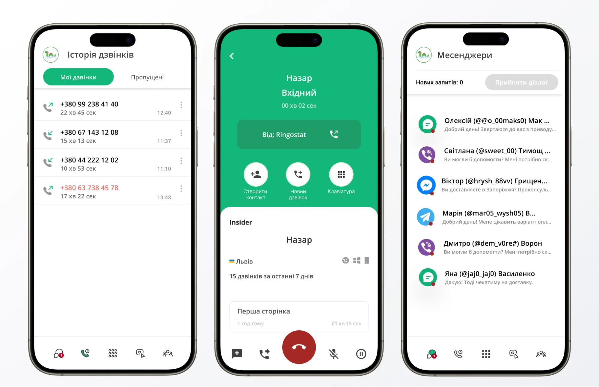 Це зручно не лише для клієнтів, які можуть обирати комфортний спосіб контакту, а й для менеджерів: усі повідомлення потрапляють в один застосунок Ringostat. Жоден лід не «губиться» в месенджері, який хтось забув перевірити.