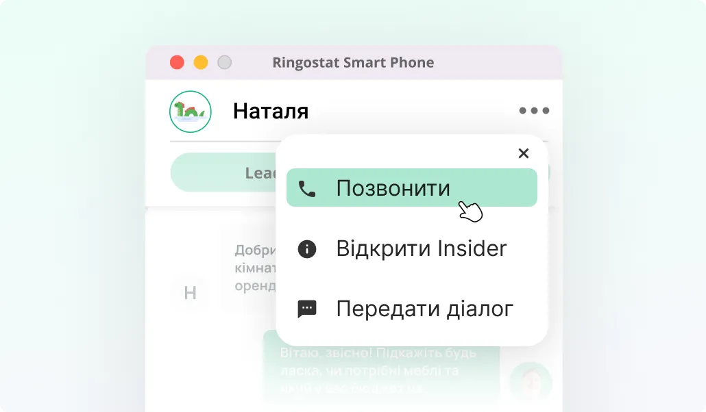 Коли тексту замало, менеджер може зателефонувати прямо з чату. Це дозволяє швидше розв’язати питання і конвертувати ліда у клієнта.