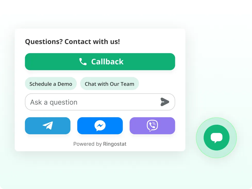 A single website widget that unites live chat, messengers (Viber, Telegram, Messenger), and callback requests. Customers choose the most convenient way to contact you — and you never miss a message, even outside business hours.