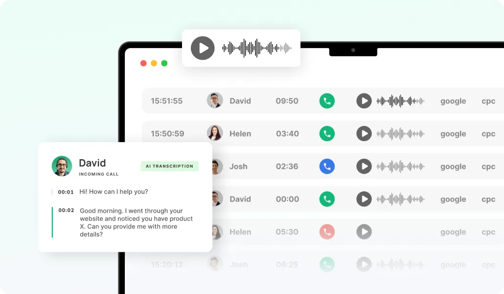 Every call is recorded and analyzed with AI to evaluate agent performance and improve service quality. See how your team communicates, identify issues instantly, and coach with real examples.