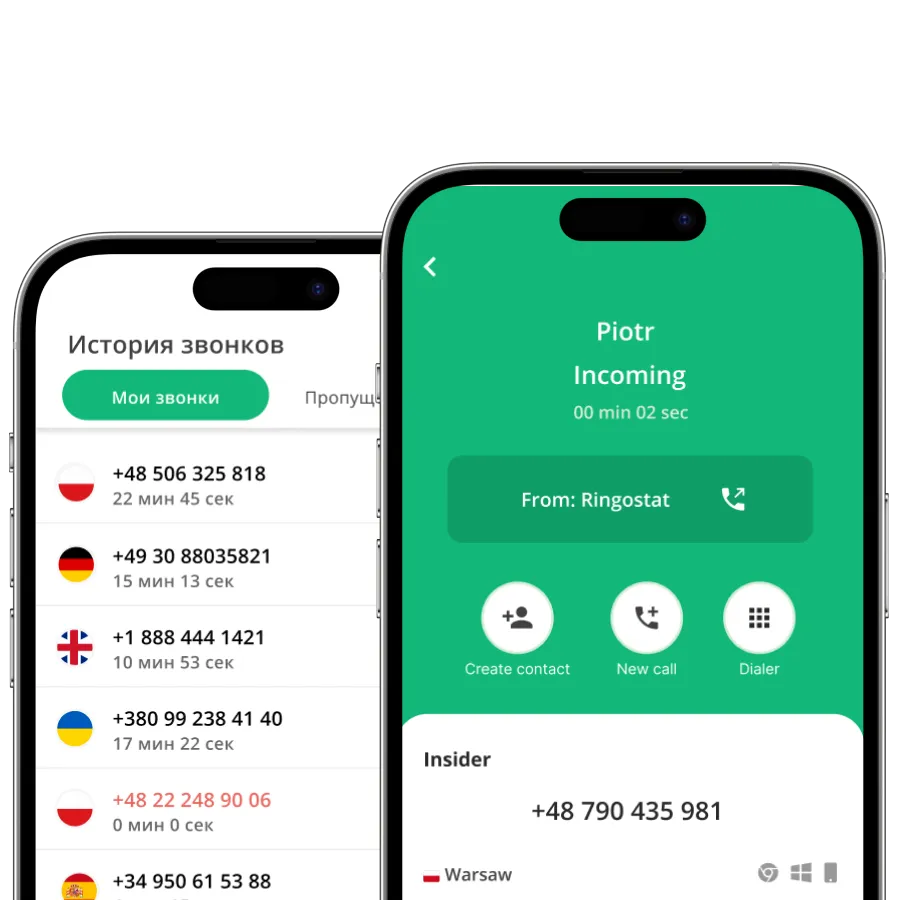 Телефонный номер, не привязанный к SIM-карте, физической телефонной линии или вашему местоположению — работает через виртуальную АТС Ringostat. Принимайте звонки из любой точки мира, контролируйте работу команды и экономьте на связи.